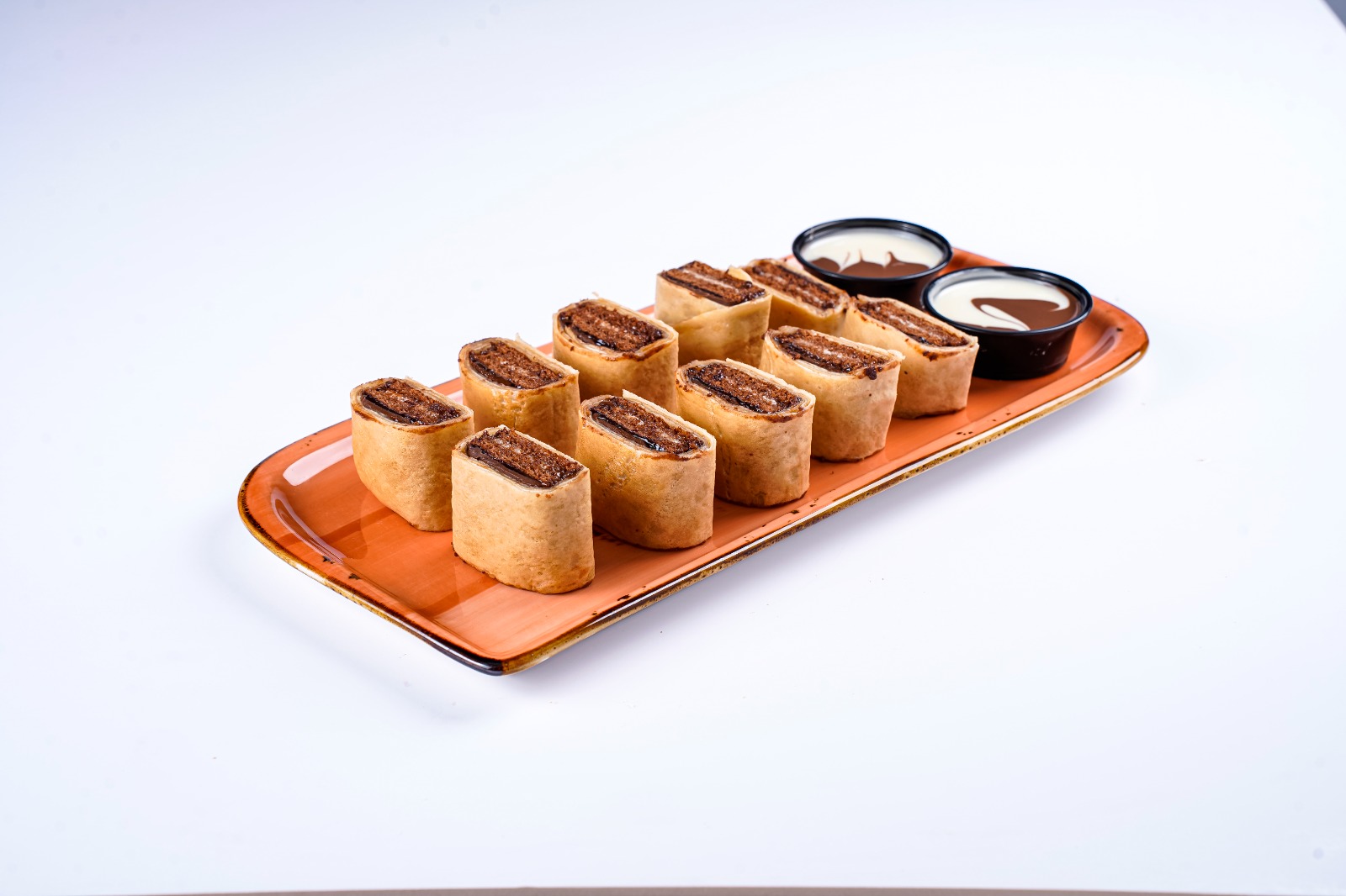 6 قطع من التشوروس.اختيار: سكر | قرفةصلصات: نوتيلا | شوكولاطه بيضاء
