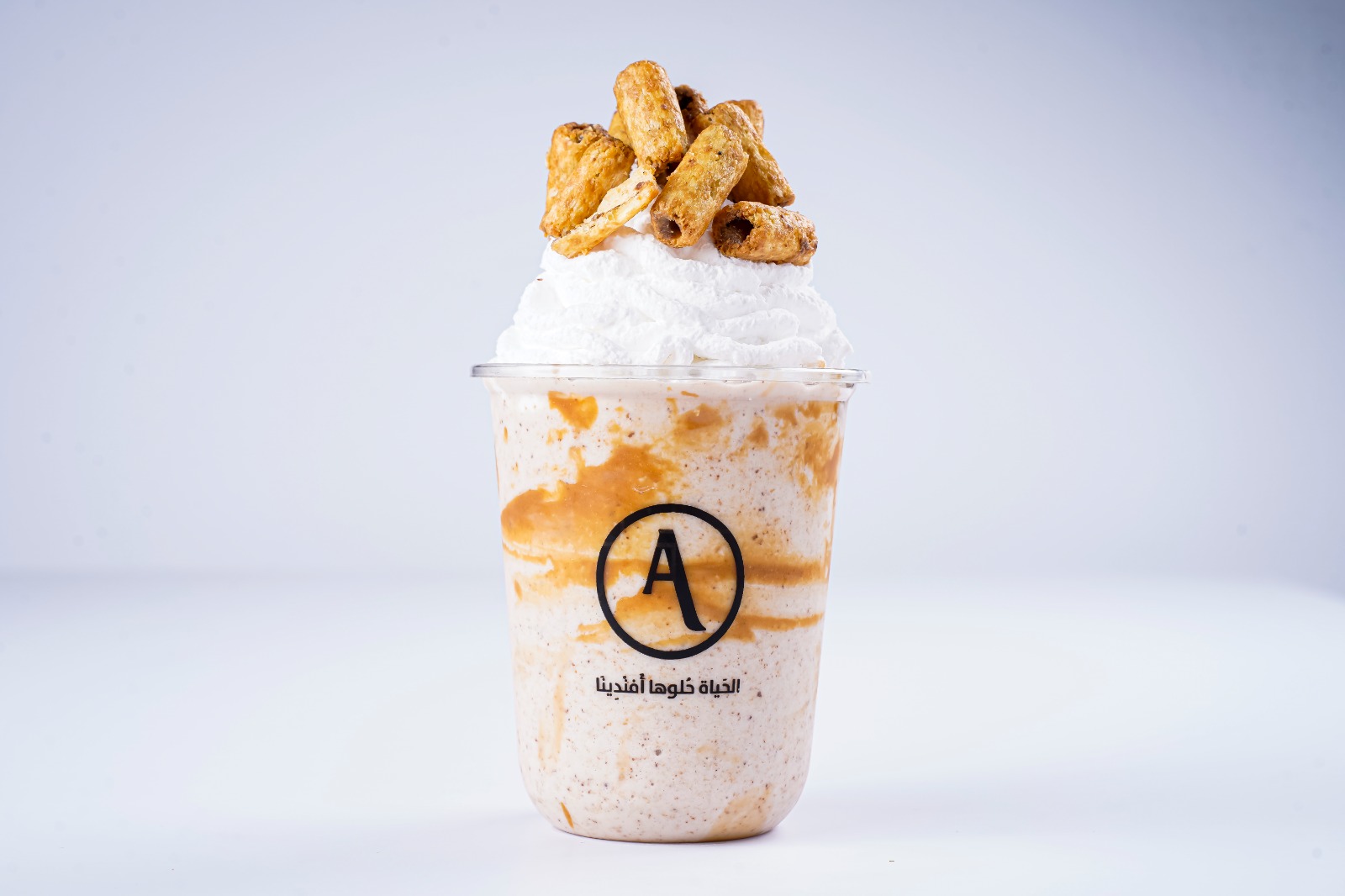تحتوي على كريمة مخفوقة وآيس كريماضافات: شراب النوتيلا 3₪ | شوكولاتة بيضاء 3₪.اختر بوظة: كيندر | أوريو | لوتس | تفاح | ليمون | توت| بيجله مملح | شوكولاتة | فانيليا | الشوكولاته مرير | فيريرو | بلو انجل | التوت | الكراميل | بسيفلورا | سنيكرز